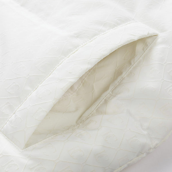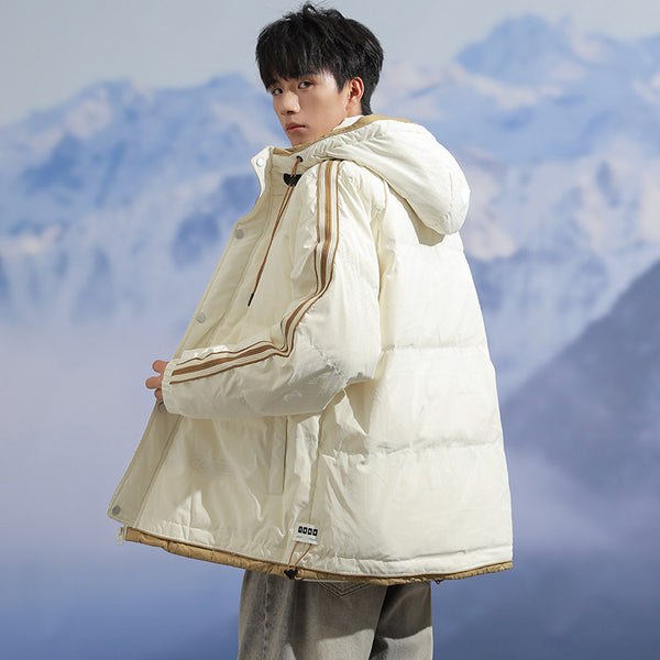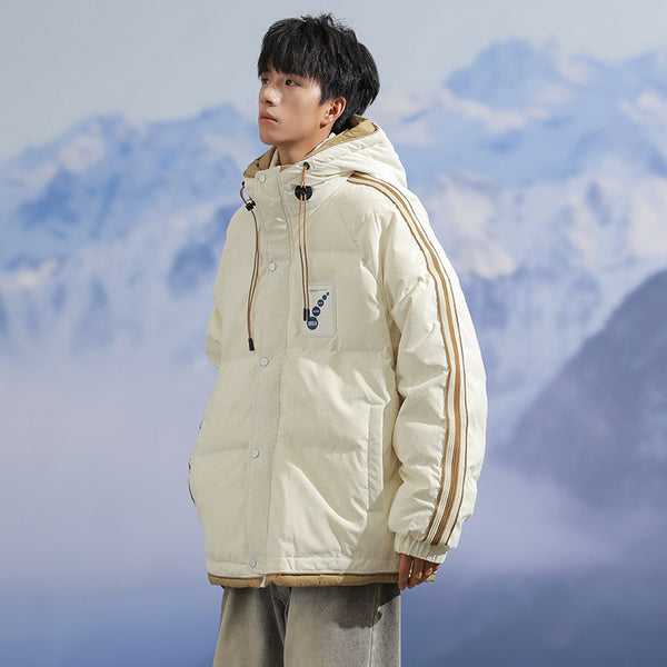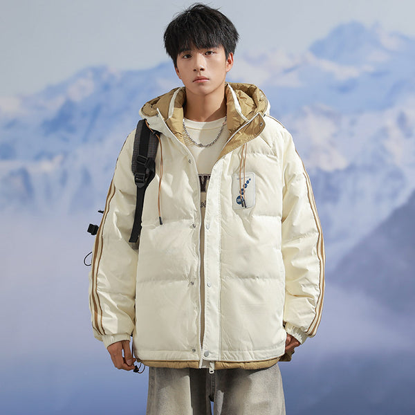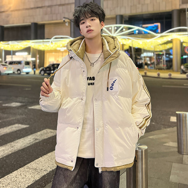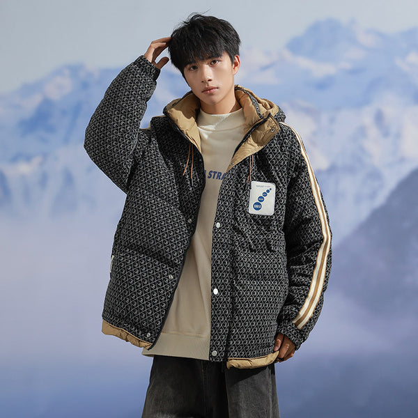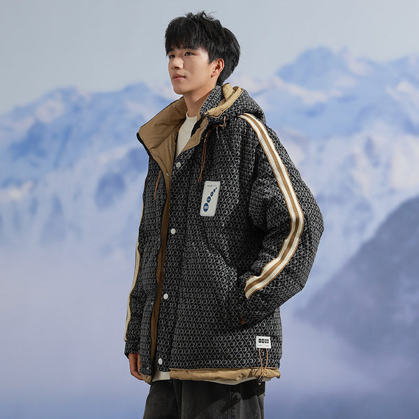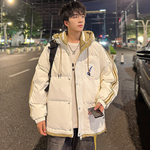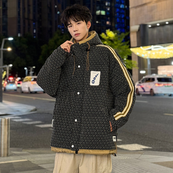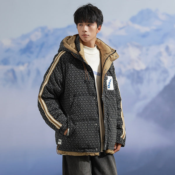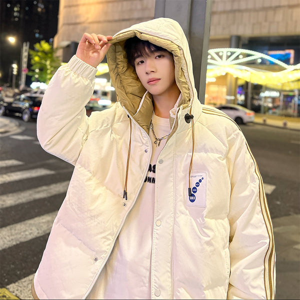 Fashion-forward winter puffer. Embossed IC monogram provides tactile luxury. Lightweight thermal cloud-fill keeps warmth. Double-stripe sleeves enhance streetwear aesthetic. Oversized fit allows layered outfits. Storm flap and zipper lock in heat. Interior contrast palette provides premium look. Ideal for urban streets, casual winter wear, and city fashion.