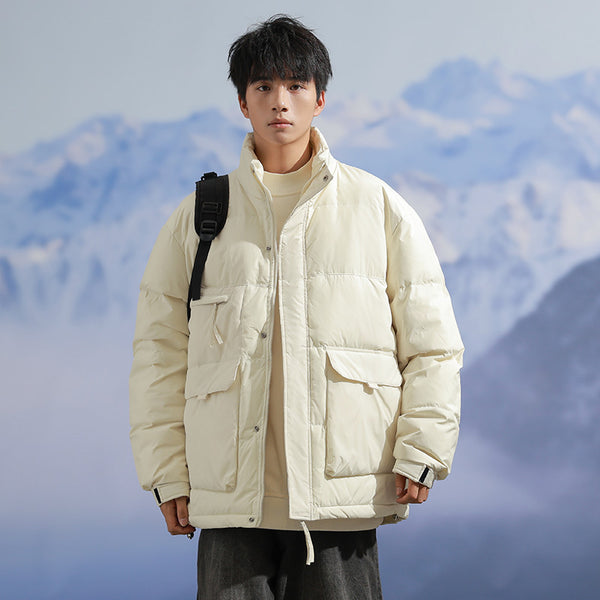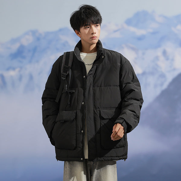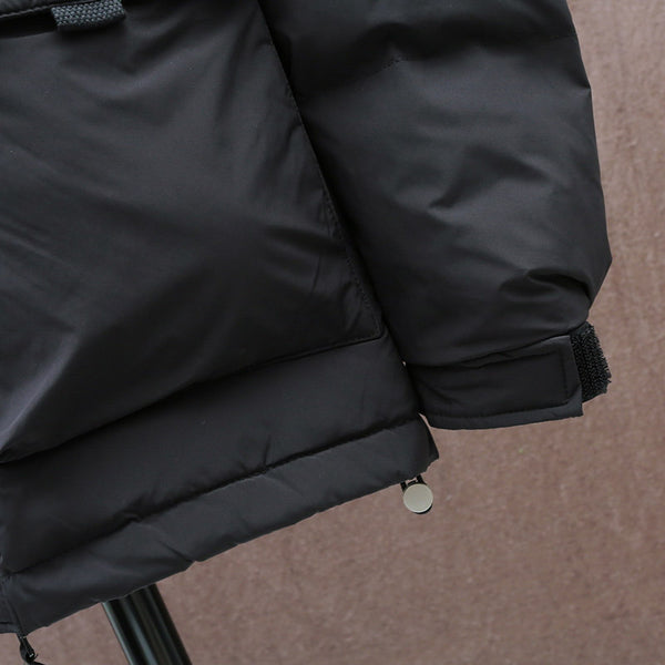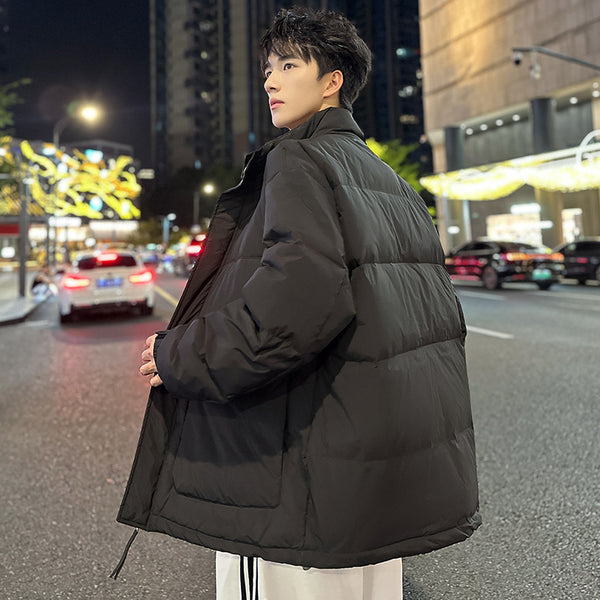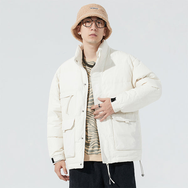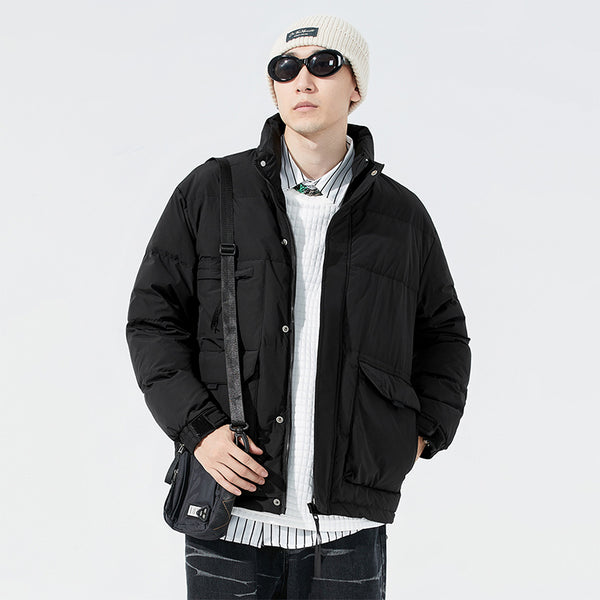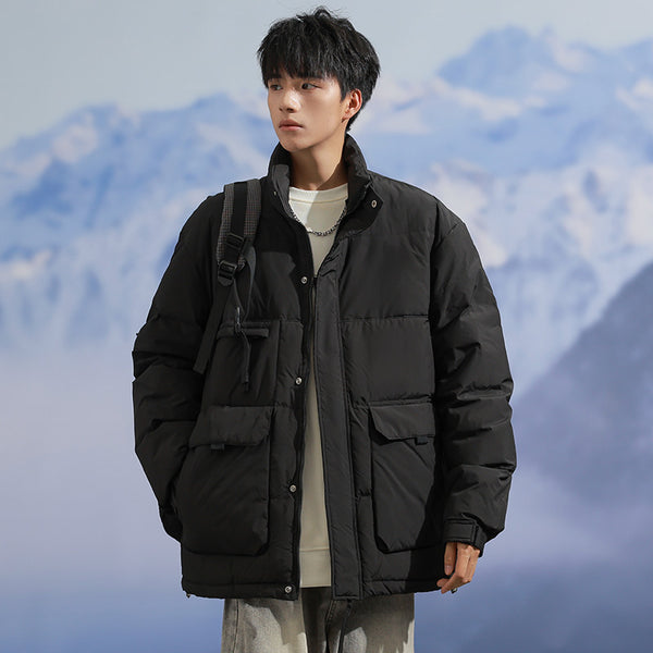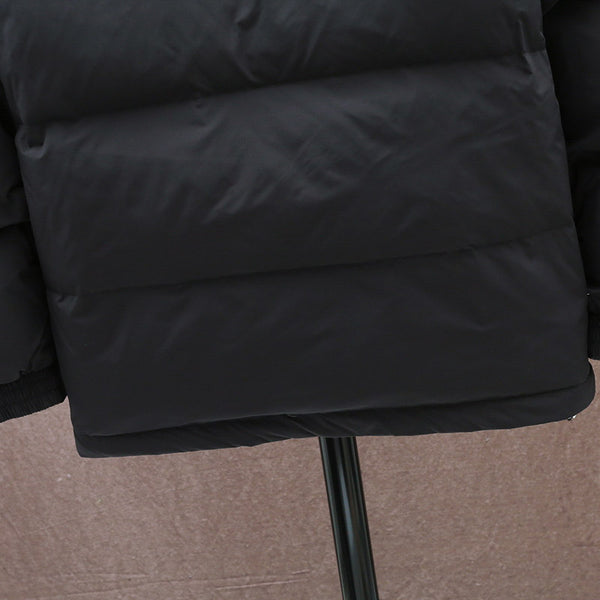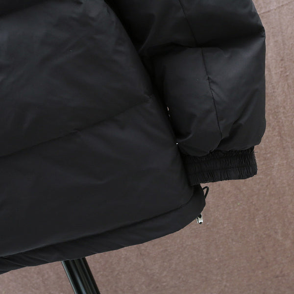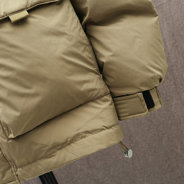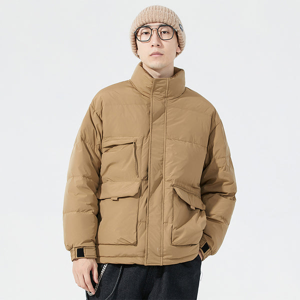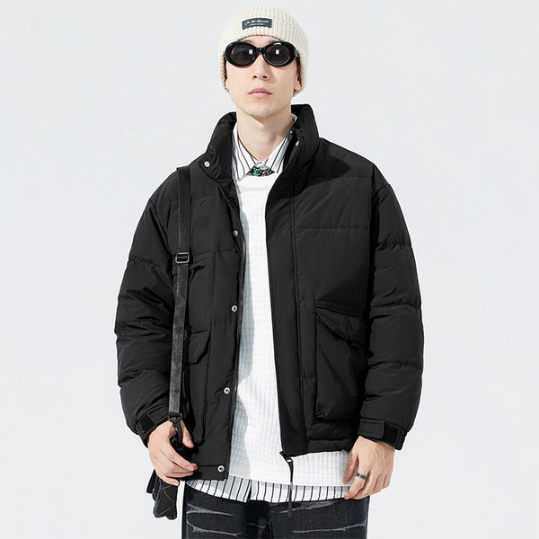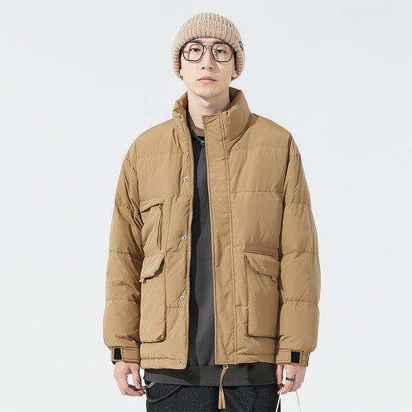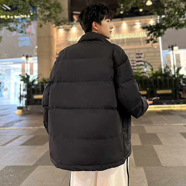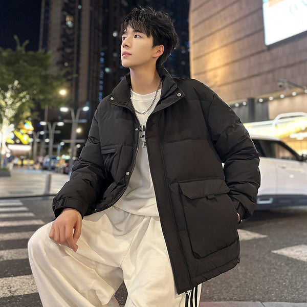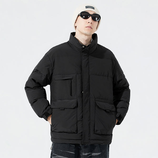 Urban winter jacket with a sleek minimalist design. High-neck collar provides protection from wind. Thick insulation ensures consistent warmth. Structured panels offer a clean, polished look. Dual front utility pockets add functionality. Adjustable hem drawcord locks in heat and allows a tailored fit. Works well with hoodies, denim, or joggers. Perfect for city streets, travel, or daily winter wear.