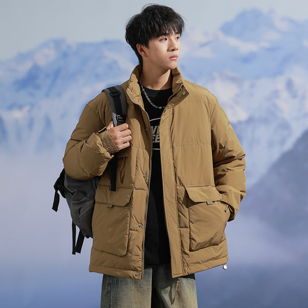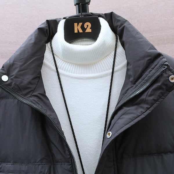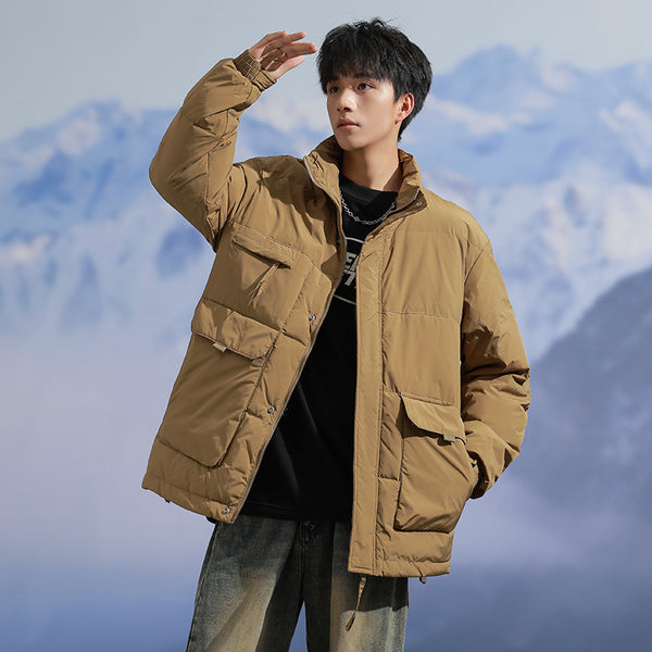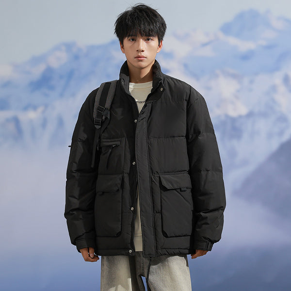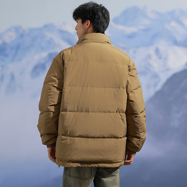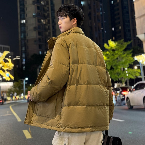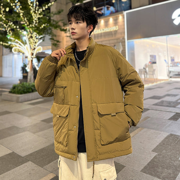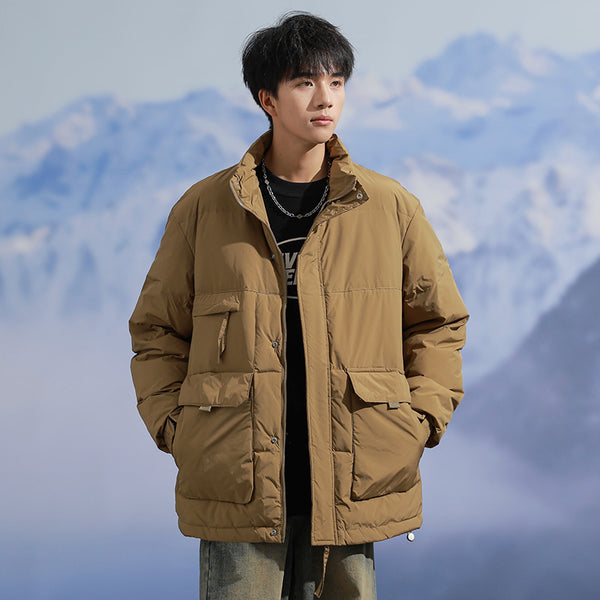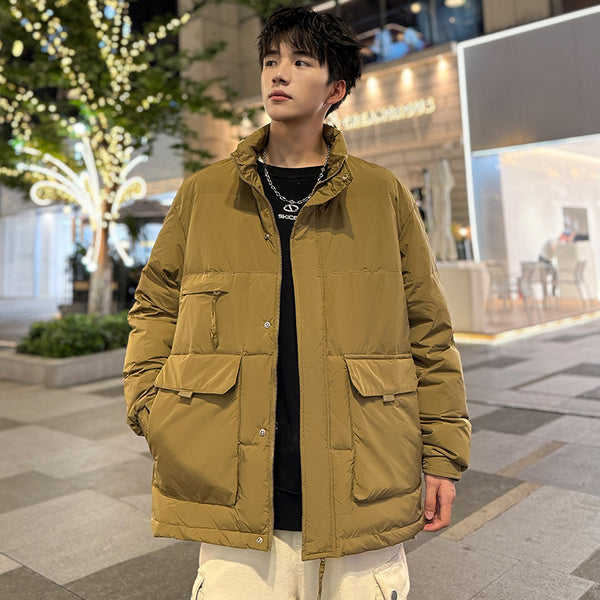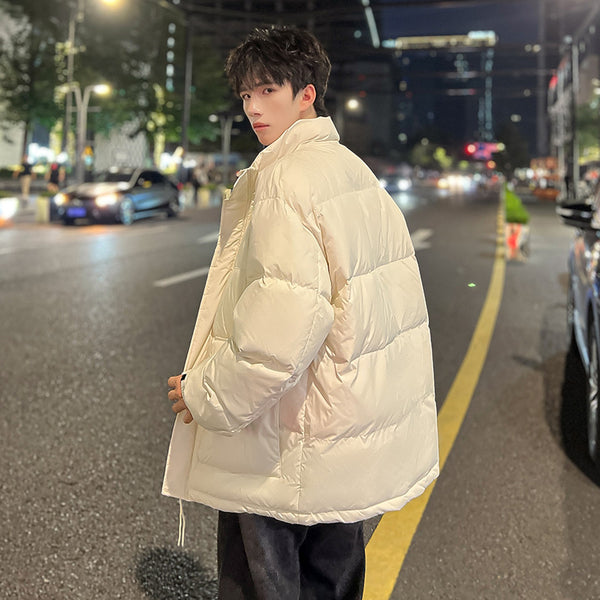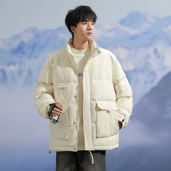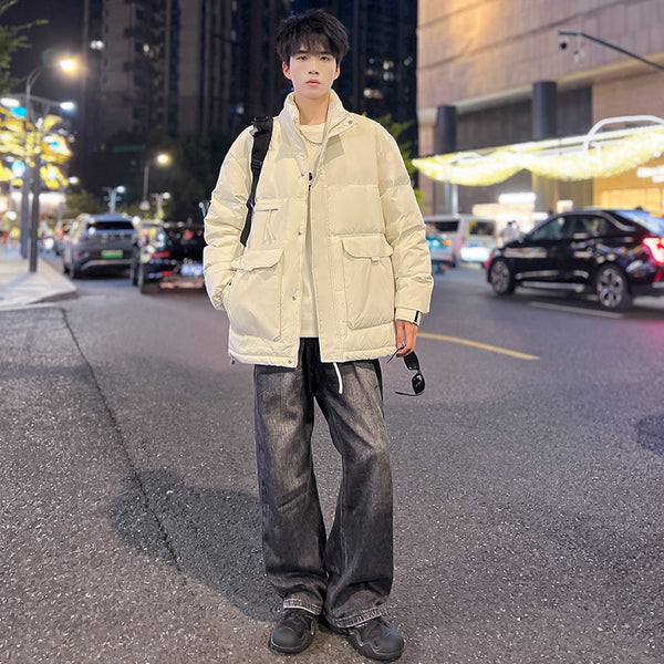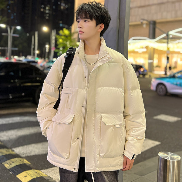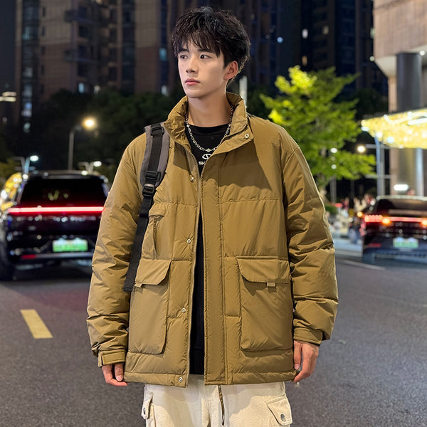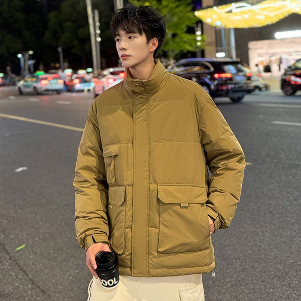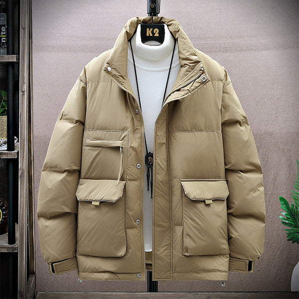 Urban winter jacket with a sleek minimalist design. High-neck collar provides protection from wind. Thick insulation ensures consistent warmth. Structured panels offer a clean, polished look. Dual front utility pockets add functionality. Adjustable hem drawcord locks in heat and allows a tailored fit. Works well with hoodies, denim, or joggers. Perfect for city streets, travel, or daily winter wear.