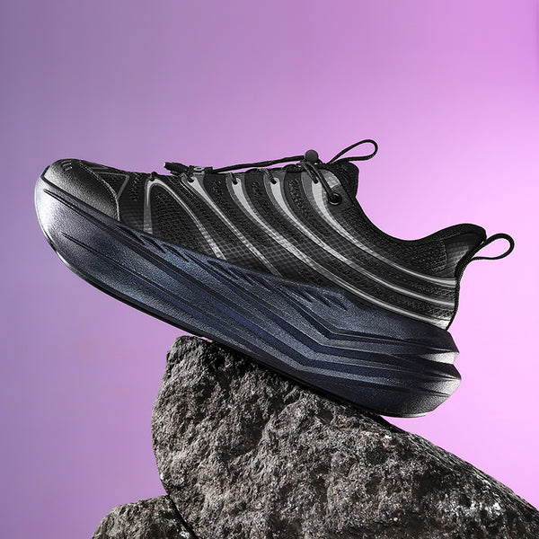 The sculptural midsole features sharp, angular geometry - built not only for standout appeal but to enhance energy return. Its layered design integrates high-resilience foam, offering a cloud-like rebound that keeps pace with your rhythm. The exaggerated rocker shape promotes a natural forward-rolling motion, reducing fatigue during long urban excursions.
