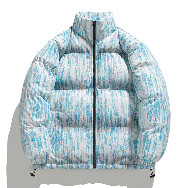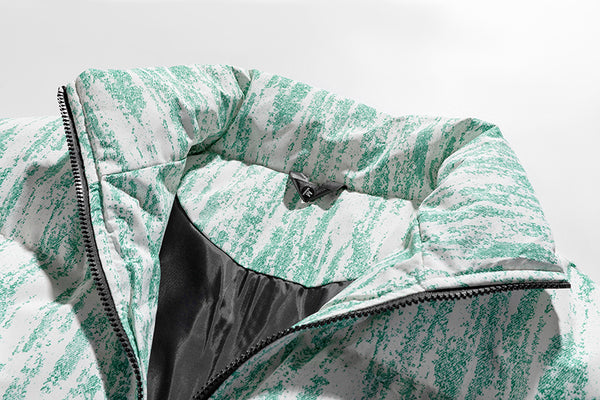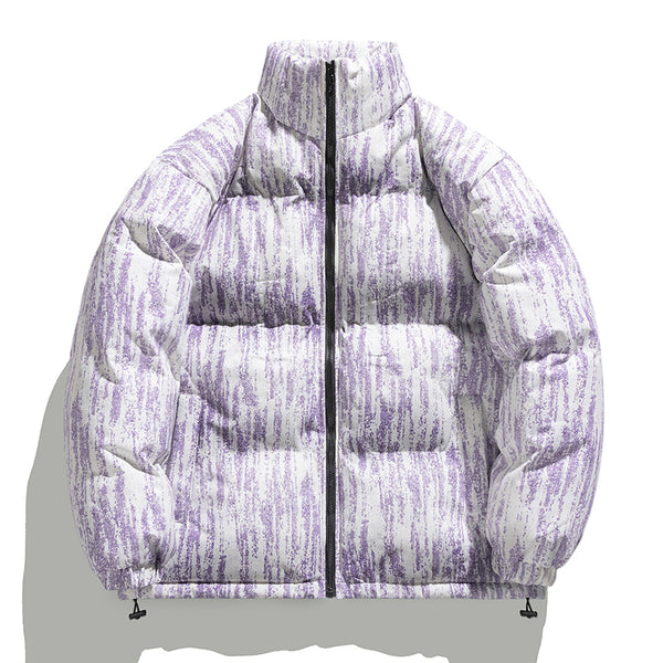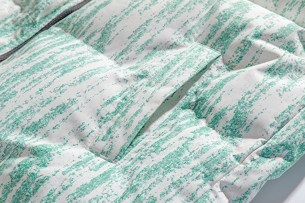 The Z704 stands out with its "Distressed Stripe" motif. Unlike traditional solid puffers, this design uses a layered, organic vertical pattern that creates a sense of height and movement. Whether in muted earth tones or vibrant pastels, the visual texture adds a premium, high-fashion feel to any urban outfit.