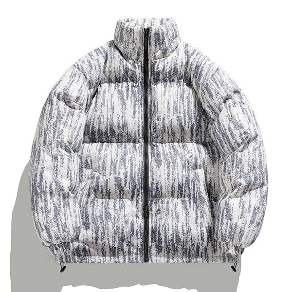 Elevate your cold-weather rotation with the MLB Z704 Puffer Jacket, a masterpiece of "Abstract Impressionism" meets modern streetwear. Featuring a unique vertical streak pattern reminiscent of natural mineral veins and rainfall, this jacket is designed for those who want high-performance warmth without sacrificing their aesthetic edge.