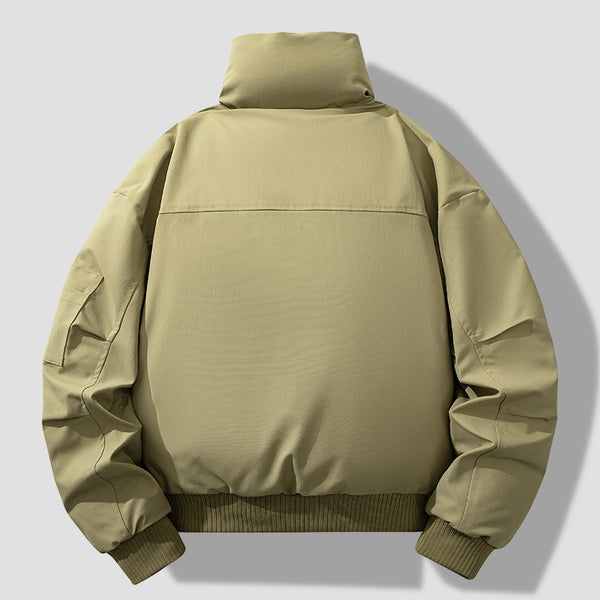 The Z709 stands out with its high-neck storm collar and reinforced paneled construction. It features a unique hybrid design combining the ruggedness of a bomber jacket with the loft of a premium puffer.