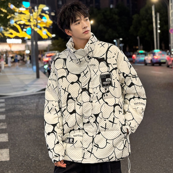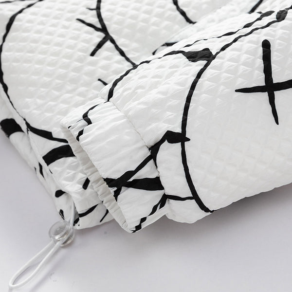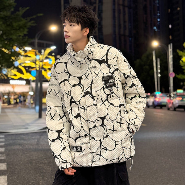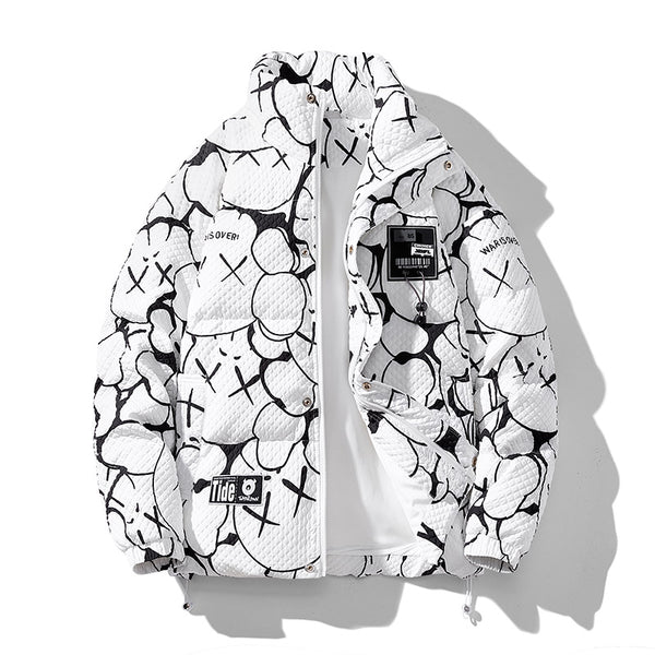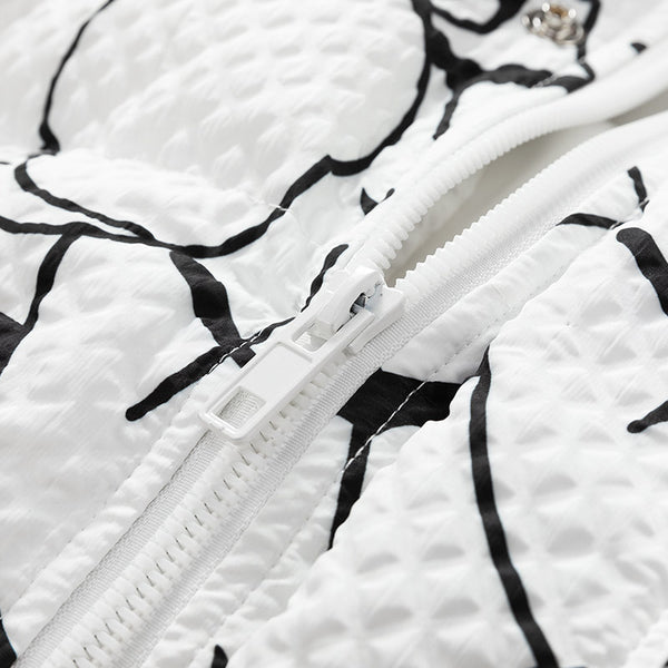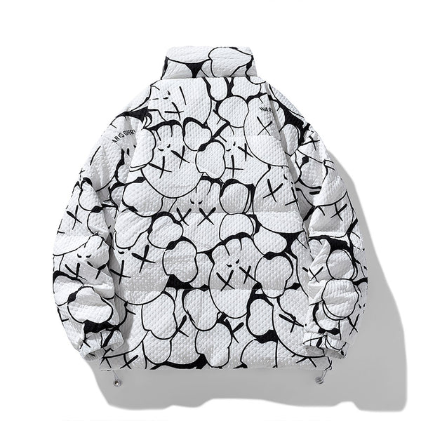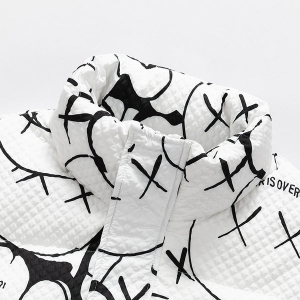 Rewrite your winter style rules with the MLB Z718 Puffer Jacket. Far from your average outerwear, this piece features an all-over "X-Eye" illustrative pattern inspired by global street art movements. Set against a crisp white background, the bold black linework creates a high-contrast aesthetic that is impossible to ignore.