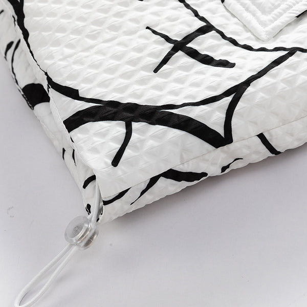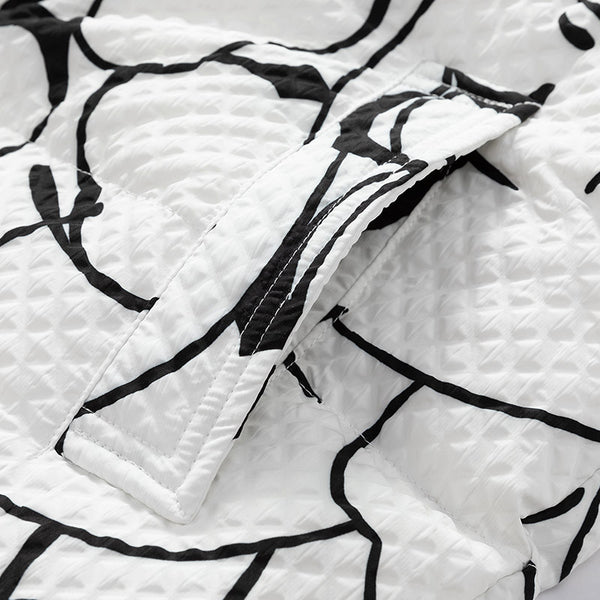• Art-Forward Design: Contemporary monochromatic doodle-print that serves as a canvas for self-expression.