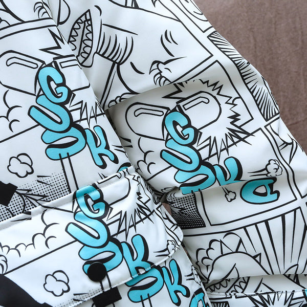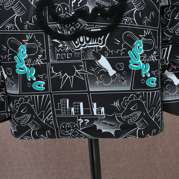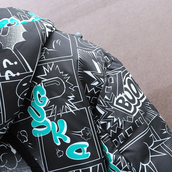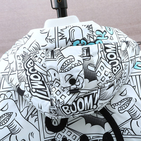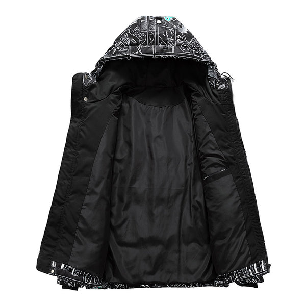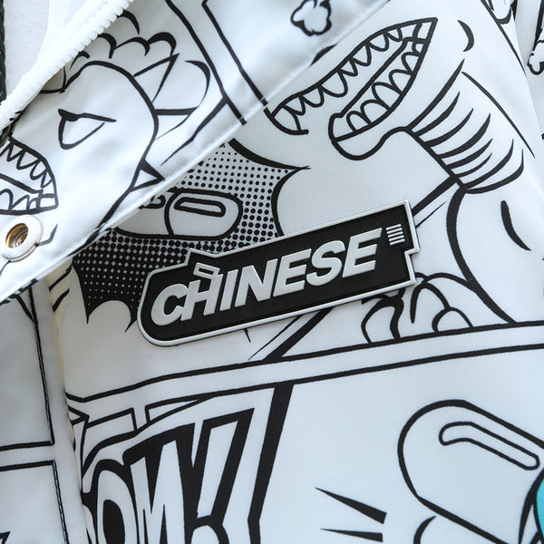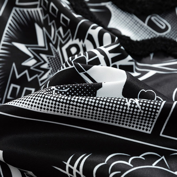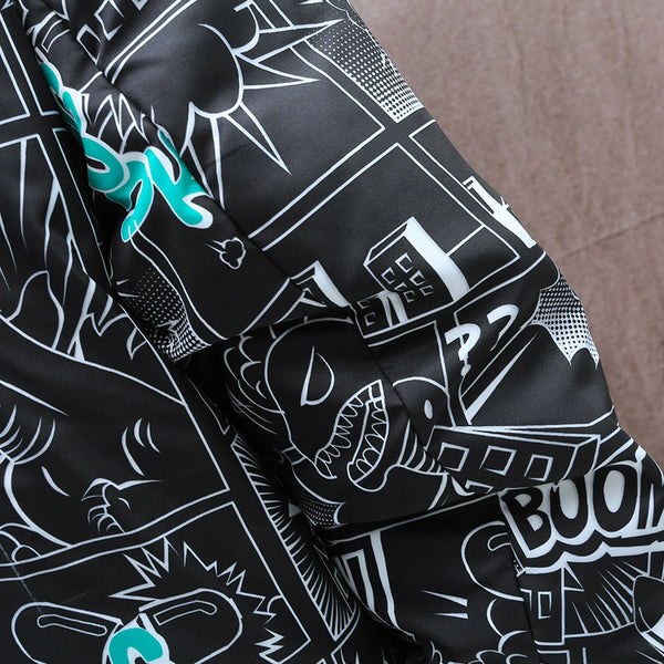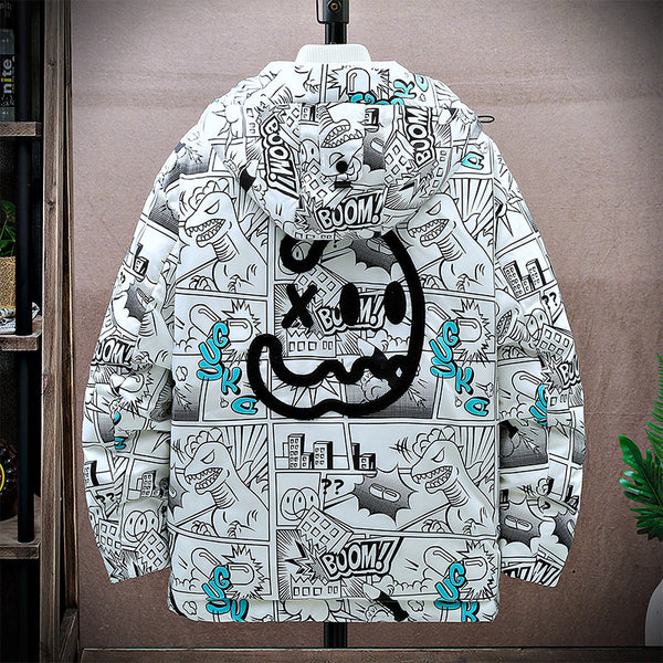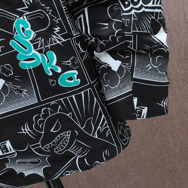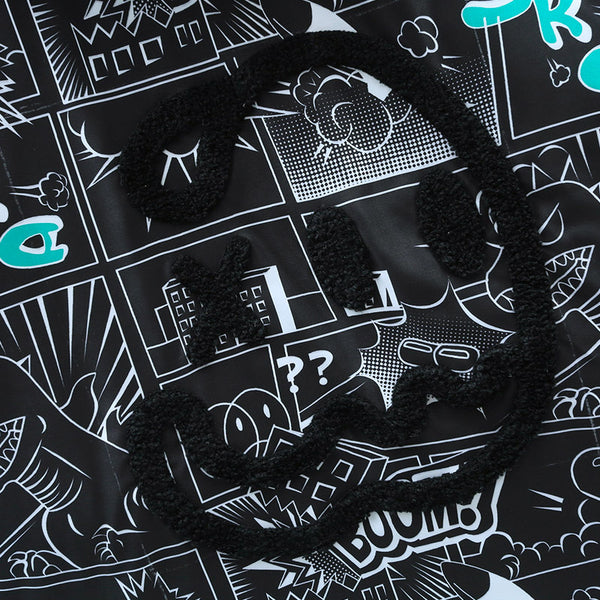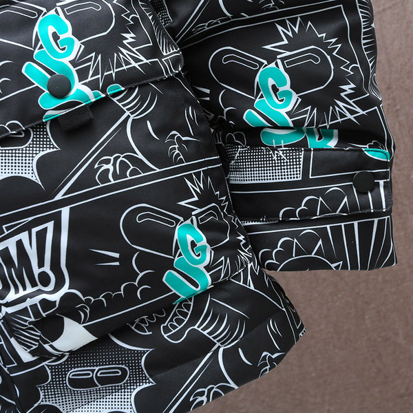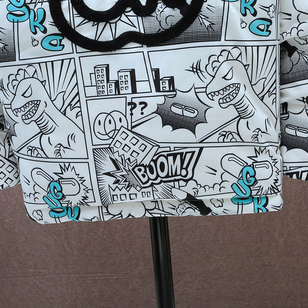 The MLB Z720 features an all-over illustrated panel print that feels dynamic, playful, and edgy at the same time. Comic-style graphics, abstract characters, and sharp line art create a layered visual story across the jacket. Subtle aqua accents cut through the monochrome base, adding depth and energy without overpowering the design.