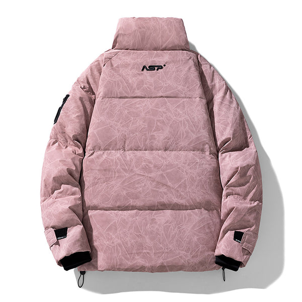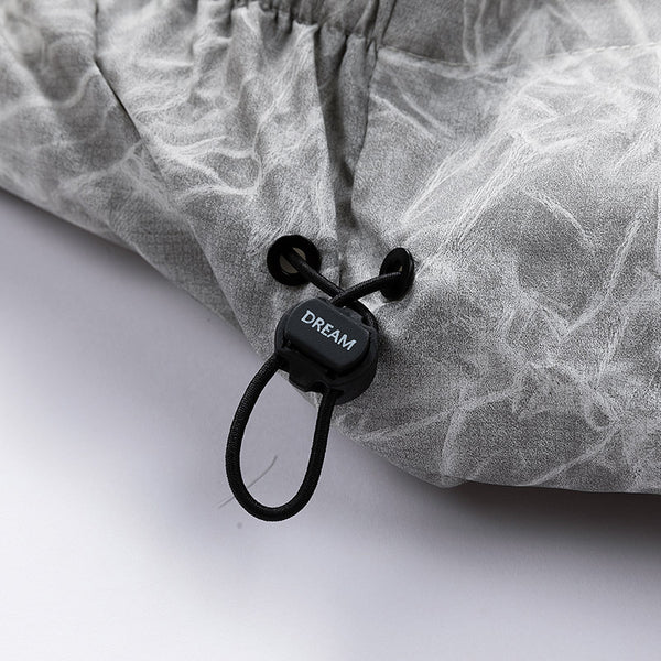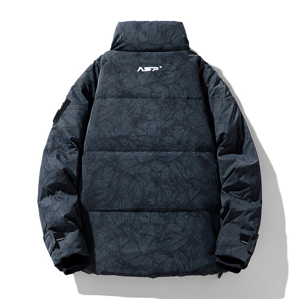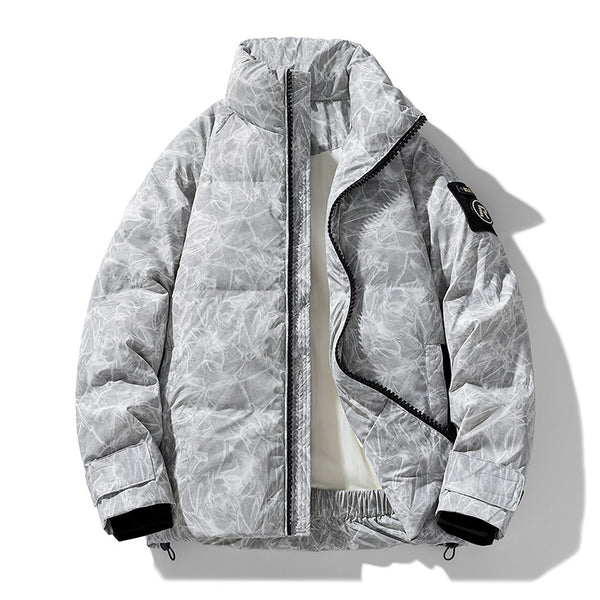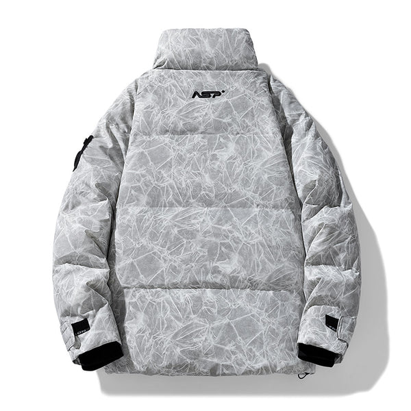 I enjoy how this jacket feels both modern and practical. The oversized fit allows layering without discomfort. The insulation traps warmth efficiently. The storm seal details help retain heat during colder evenings. The marble texture elevates the jacket beyond basic winter outerwear.
