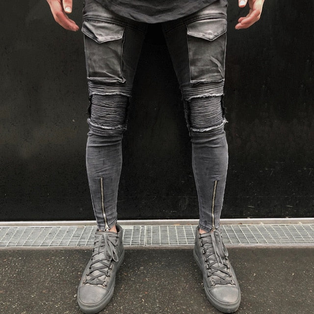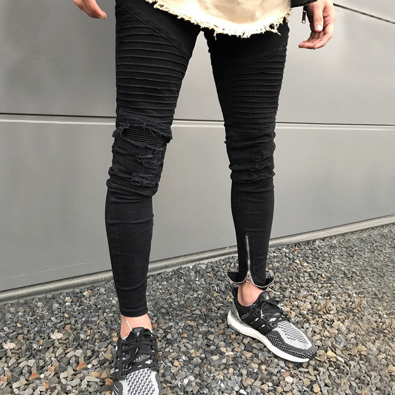 Premium Ripped Ankle Zipper Black Biker Jeans
