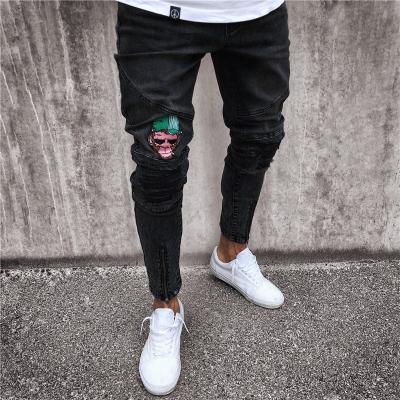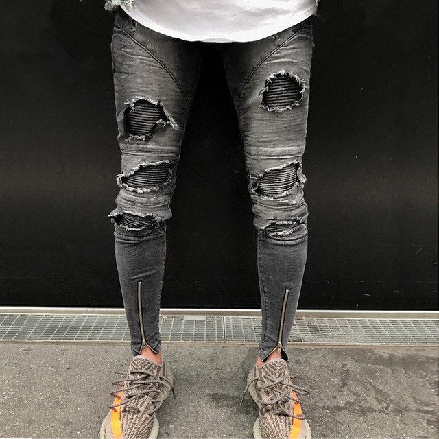 Premium Distressed Skinny Ripped Ankle Zipper Jeans