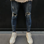 Dark Blue Ripped Skinny Side Stripe & Ankle Zipper Jeans