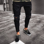 Black Skinny Ripped Side Stripe/Ankle Zipper Jeans