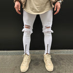 Destroyed Knee Ripped Side Stripe/Zipper Skinny Jeans