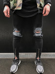 Black Knee Ripped Distressed Ankle Zipper Jeans