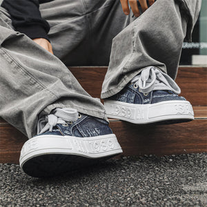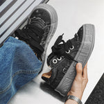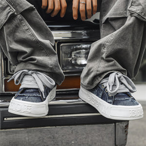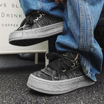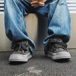 Denim Black/Grey—Rugged noir denim meets bold grey sole for a rebellious street statement.