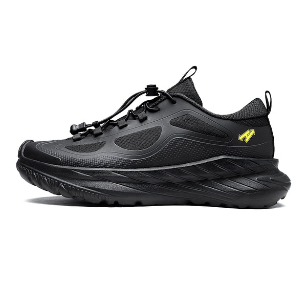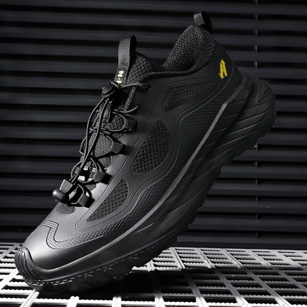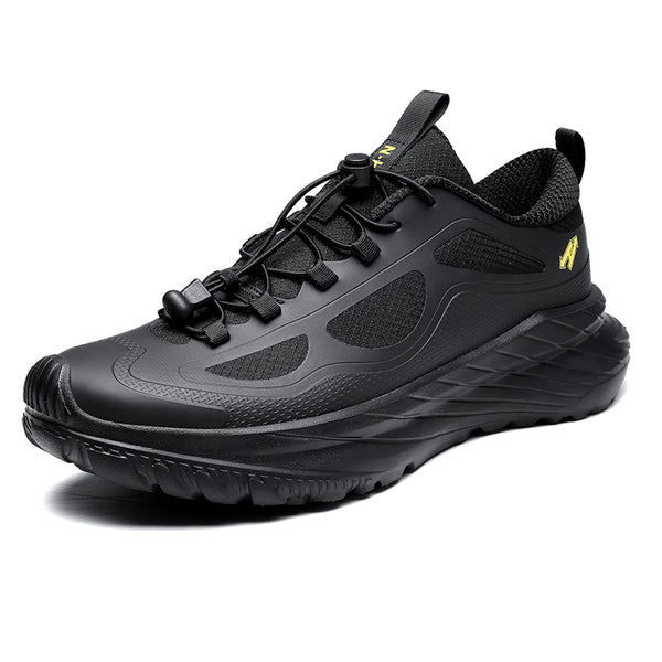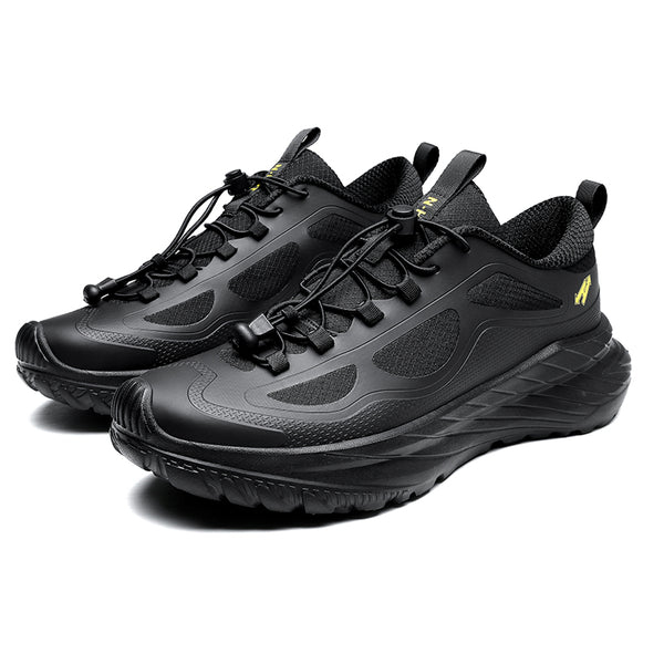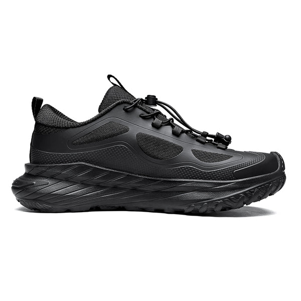 The thick sculpted sole is designed with deep traction patterns and layered geometry to absorb shock and stabilize every step. Its forward-rolling shape encourages efficient movement, supporting long hours without compromise.