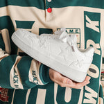Pair the Denim Blue/White with distressed joggers and an oversized hoodie for a laid-back luxe look. Style the Ghost White with tailored trousers and a box-fit tee for minimal street charm. The Green/White variant pops with monochrome athleisure, while Brown/White offers rustic flair with dark denims. Each version adds edge to any outfit.
