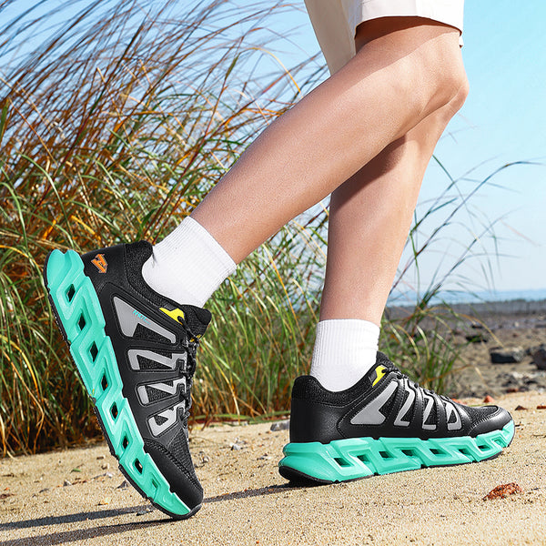 Black/Aqua Green: A striking contrast where a dark, tactical upper meets a vibrant aqua-green sole, injecting kinetic energy and modern edge into the design.