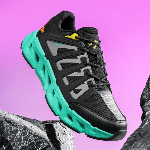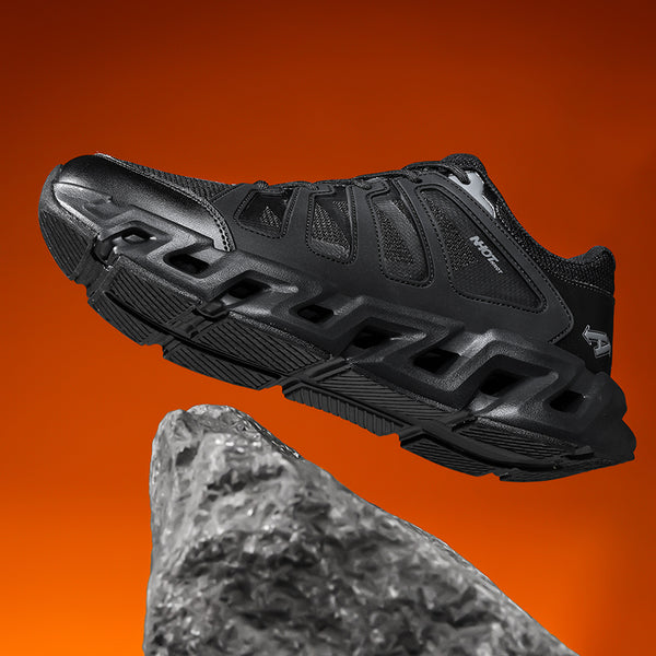 Impact-Absorb Geometry Sole: Angular cushioning design for stability, rebound, and visual impact.