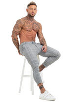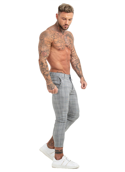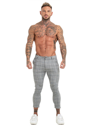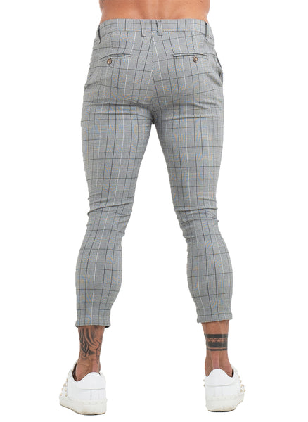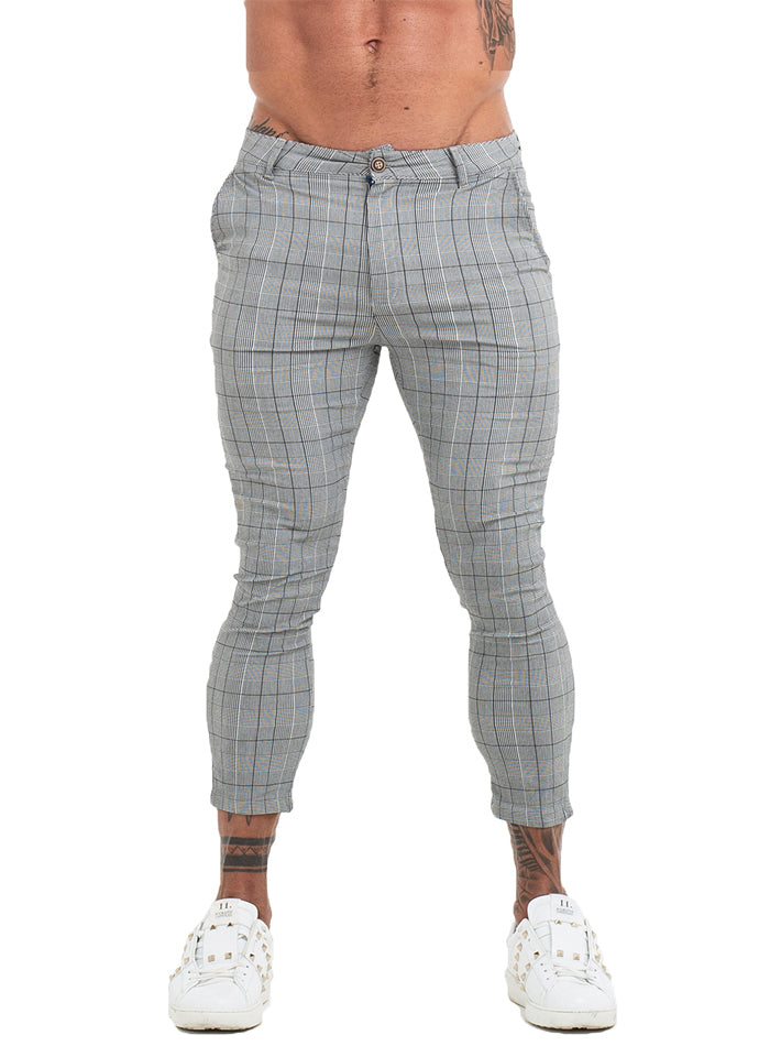 Pant Style: Skinny ChinosStyle: England StyleFit Type: Skinny StretchMaterial: CottonWaist Type: MidLength: CroppedThickness: MidweightFront Style: FlatFabric Type: BroadclothClosure Type: Button FlyDecoration: Plaid Pattern