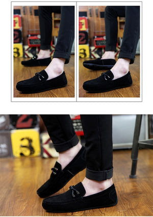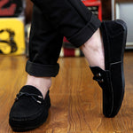 Shoes Type: Boat ShoesPattern Type: SolidInsole Material: PUFeature: BreathableClosure Type: Slip-OnUpper Material: Cow SuedeLining Material: Cotton FabricFit: Fits true to size, take your normal sizeOutsole Material: Rubber