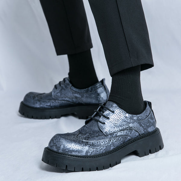 Type: Chunky Faux Snake-Skin Oxford Brogues