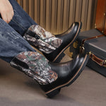 Boot Type: Western Cowboy Boots with Camo Detailing Colourways: Rich Brown & Classic Black with Multi-Toned Camo Print
