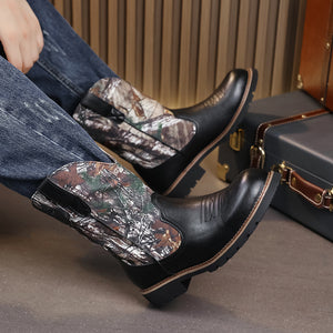 Ride into rugged style with ourCamo Western Cowboy Boots—a bold fusion of timeless cowboy design and modern outdoor aesthetics. These boots feature a premium leather lower paired with a camo-print shaft, adding a contemporary twist to the classic western silhouette. Built for durability, comfort, and standout style, these boots are perfect for making a statement wherever the trail takes you.